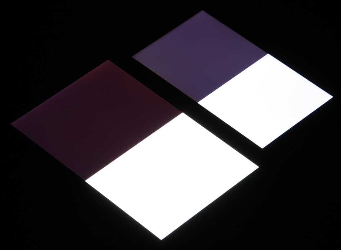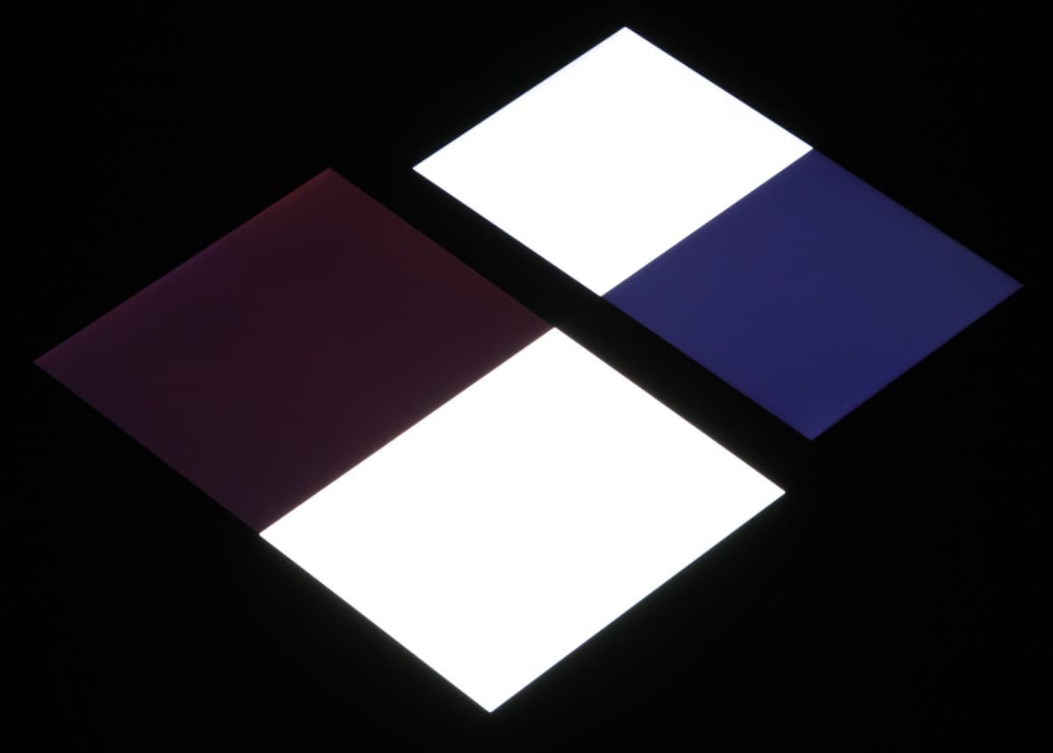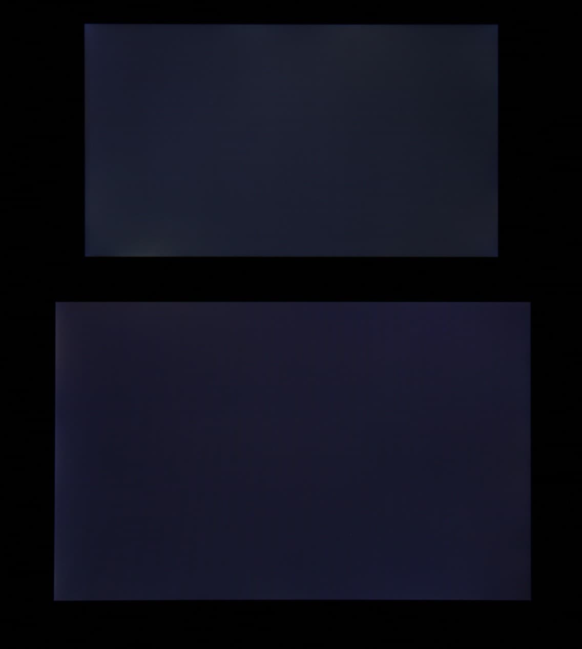 Яркость под углом у экранов уменьшилась (как минимум в 5 раз, исходя из разницы в выдержке), но у Cubot Max экран намного темнее. Черное поле при отклонении по диагонали высветляется сильно и приобретает фиолетовый или красно-фиолетовый оттенок. Фотографии ниже это демонстрируют (яркость белых участков в перпендикулярном плоскости экранов направлении одинаковая!):