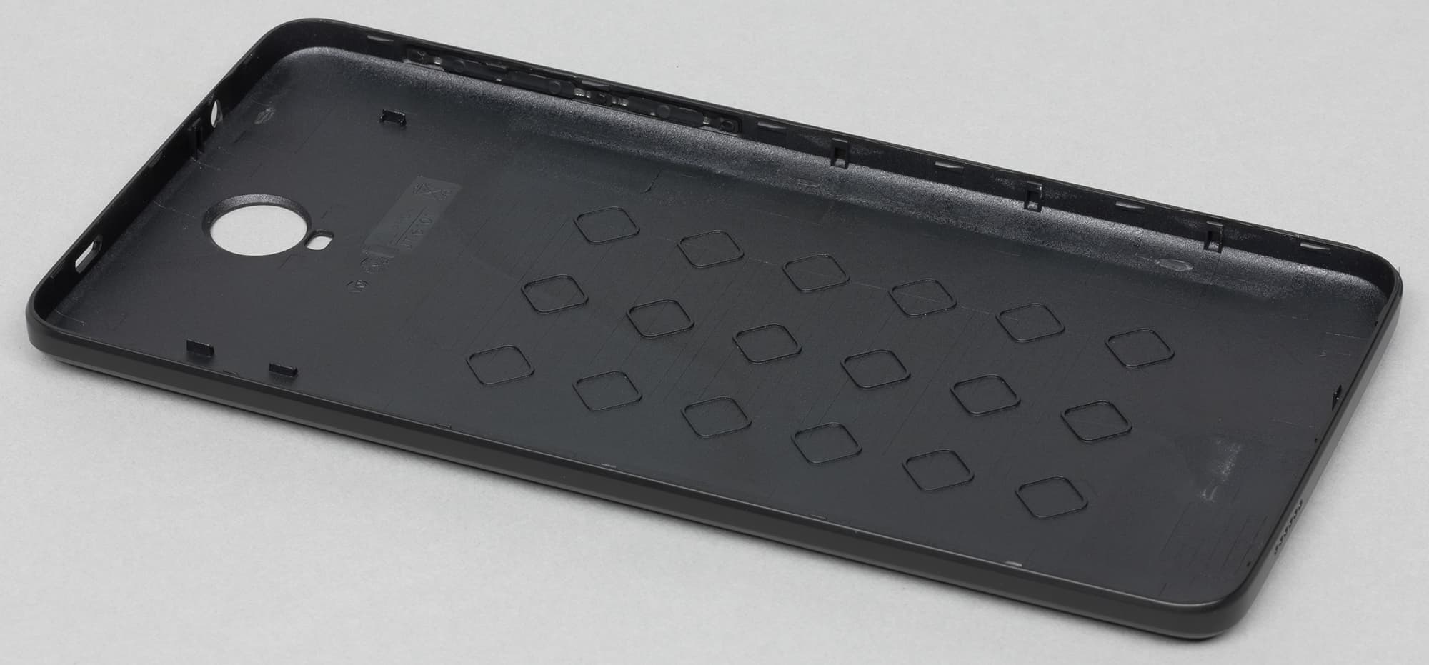Внешняя часть корпуса максимально упрощена: тут нет стеклянных плоских панелей, металлического обтекаемого цельного остова unibody, кожаных задников или хромированных боковых рамок. Корпус, кроме стекла дисплея, полностью накрыт пластмассовым кожухом, как это делалось когда-то в самых дешевых мобильных аппаратах, а теперь довольно редко встречается даже в бюджетном секторе.