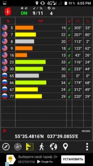 Навигационный модуль поддерживает две спутниковые системы навигации — GPS и Глонасс, без Beidou. К работе модуля навигации особых претензий нет, первые спутники при холодном старте обнаруживаются в течение первых десятков секунд, положение фиксируется с минимальной погрешностью. А вот датчиком магнитного поля, на основе которого обычно функционирует цифровой компас навигационных программ, смартфон, к сожалению, не оснастили. Да и вообще в Cubot Max нашлось всего три датчика: освещения, приближения и акселерометр.