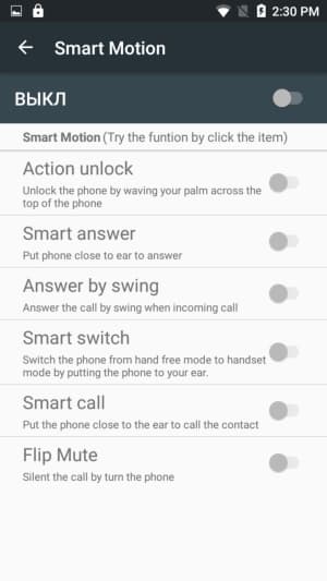 В качестве программной платформы в Cubot Max используется 64-разрядная программная платформа Google Android версии 6.0, есть возможность обновления по воздуху (ОТА). Альтернативной оболочки тут нет, оформление и структура интерфейса ОС не менялись, но добавлена широкая поддержка жестов: касания, свайпы, рисование жестов, бесконтактные пассы над экраном. Настройке всего этого посвящен отдельный раздел, и он, как обычно, не переведен на русский язык даже в русскоязычном варианте интерфейса. Дополнительных предустановленных программ нет, добавлен лишь диспетчер файлов.