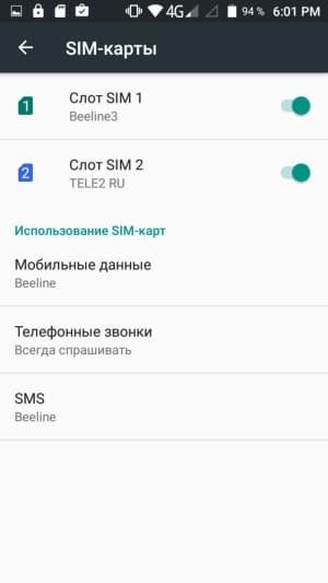 Смартфон не поддерживает работу с двумя SIM-картами 3G и 4G одновременно, поскольку платформа здесь не из последних. То есть SIM-карты таких операторов, как Tele2, не будут работать в 3G на голосовую связь, если под передачу данных в 4G назначена карта из другого слота. Интерфейс позволяет выбрать для каждой из функций определенную карту заранее или прямо во время соединения. Работают карты в режиме Dual SIM Dual Standby, радиомодем здесь один.