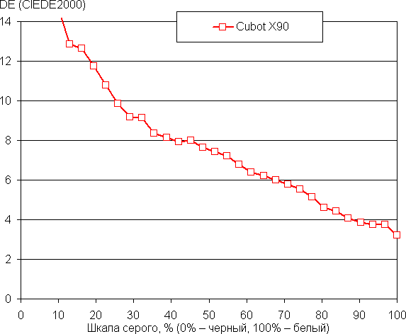 (Самые темные области шкалы серого в большинстве случаев можно не учитывать, так как там баланс цветов не имеет большого значения, да и погрешность измерений цветовых характеристик на низкой яркости большая.)