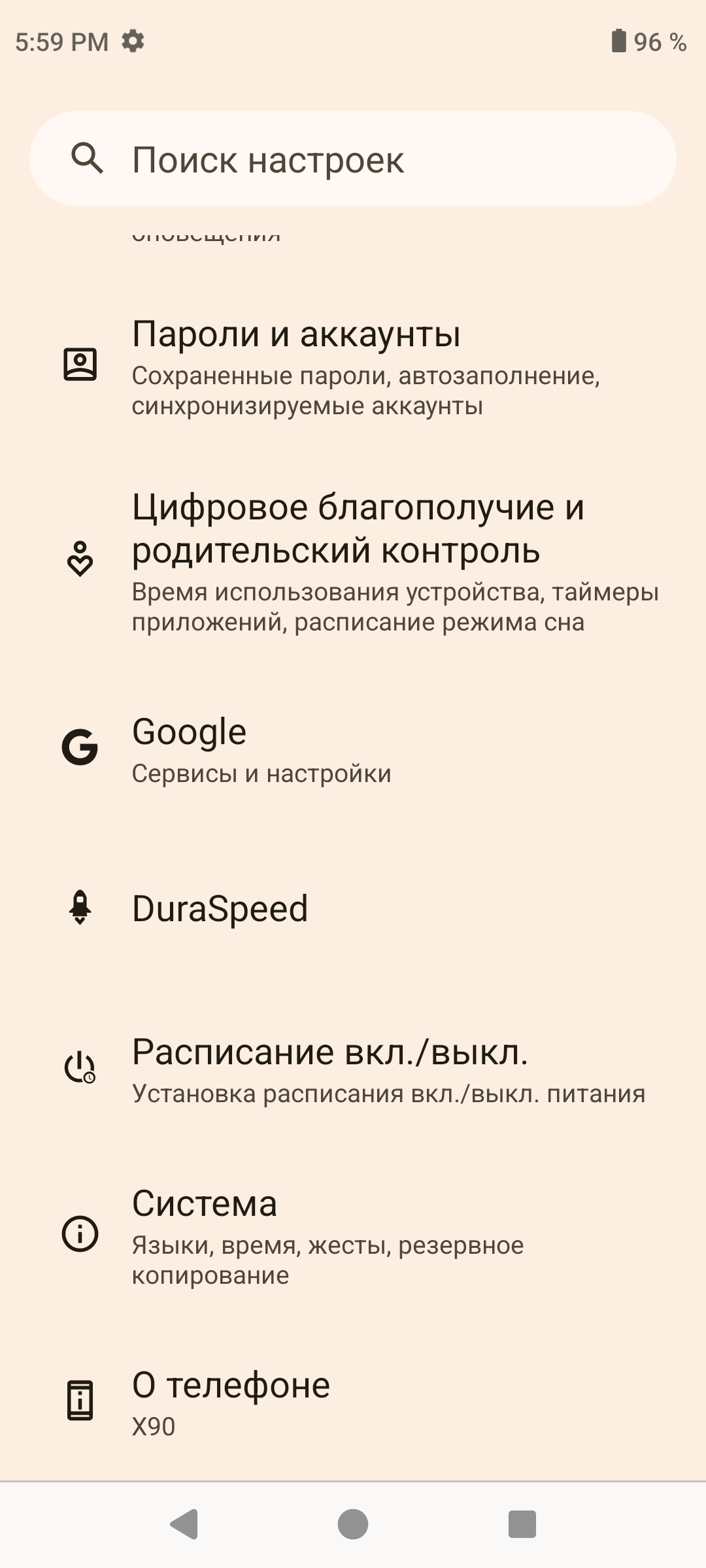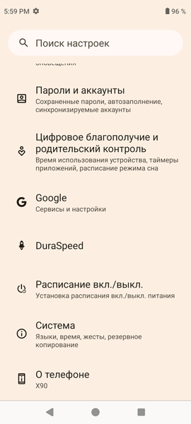 В качестве программной платформы Cubot X90 использует ОС Android 14, по виду практически чистую версию, хотя без пресловутой «убивалки всего живого фоновых процессов» DuraSpeed не обошлось. Всплывающей рекламы нет, замусоренности предустановленными программами тоже нет, интерфейс быстрый. Имеется полная поддержка сервисов Google.