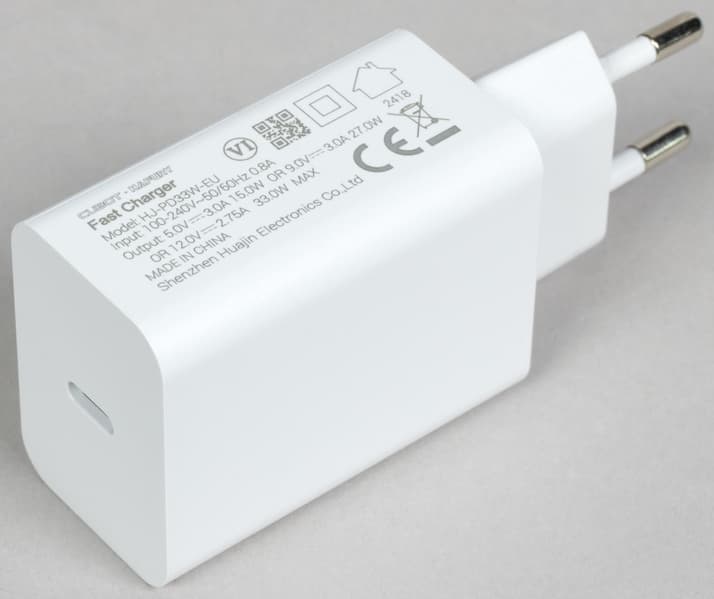 Комплект аксессуаров включает соединительный кабель, сетевое зарядное устройство (33 Вт) с разъемом USB Type-C, защитный чехол и защитное стекло на экран.