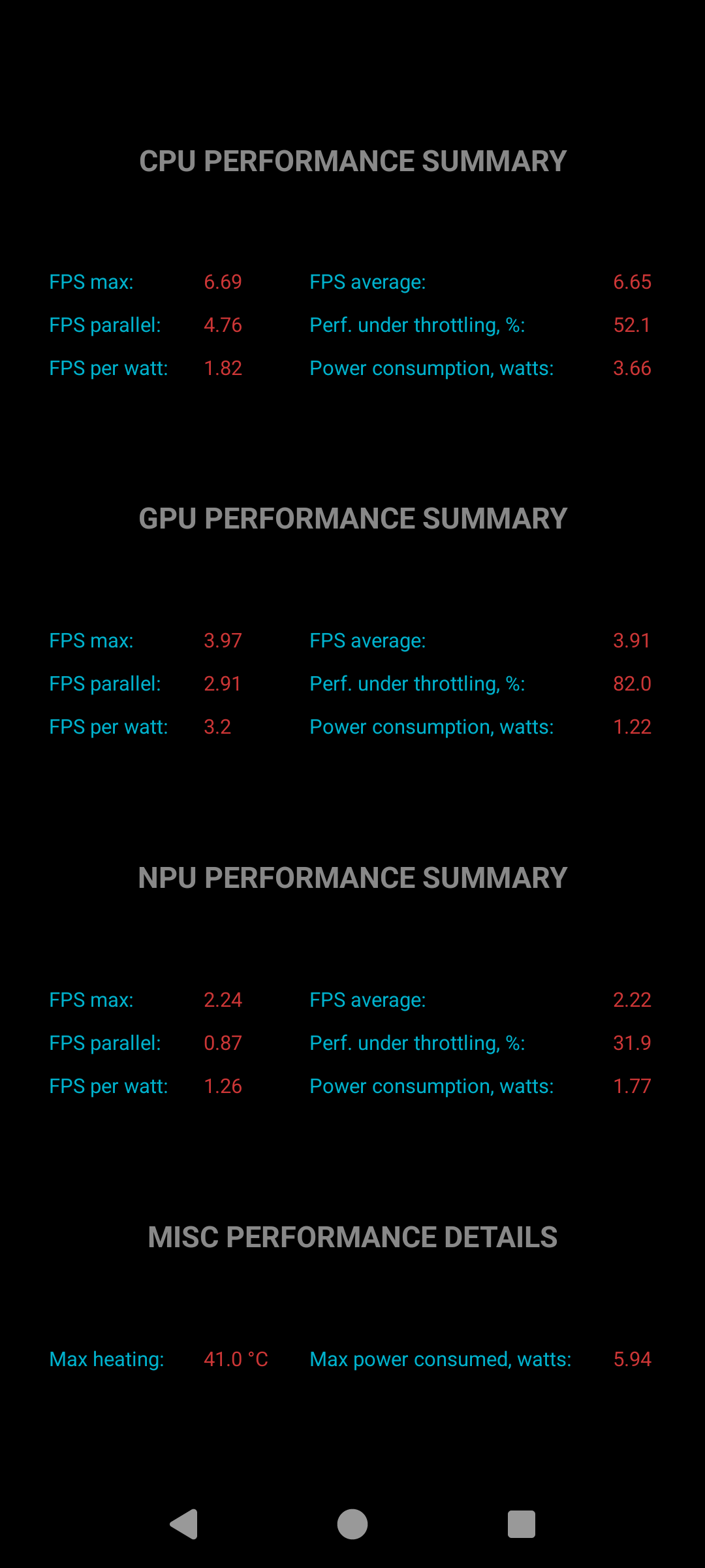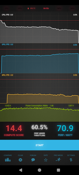 Тест на снижение производительности при нагреве мы проводим с помощью программы Burnout Benchmark, которая позволяет нагружать CPU, GPU и NPU: