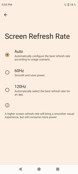 В настройках экрана можно включить режим с повышенной до 120 Гц частотой обновления: