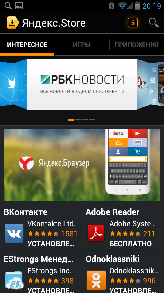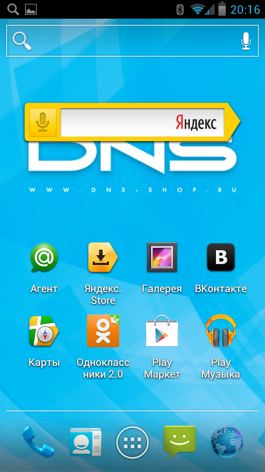 Единственное, что сделала DNS с прошивкой смартфона — добавила несколько сторонних приложений. Очевидно, работники компании DNS — поклонники отечественного интернет-гиганта Яндекс. В памяти смартфона оказалось записано множество программ этой компании: Яндекс.Поиск, Яндекс Store, Карты, Погода, Киноафиша, Электрички.