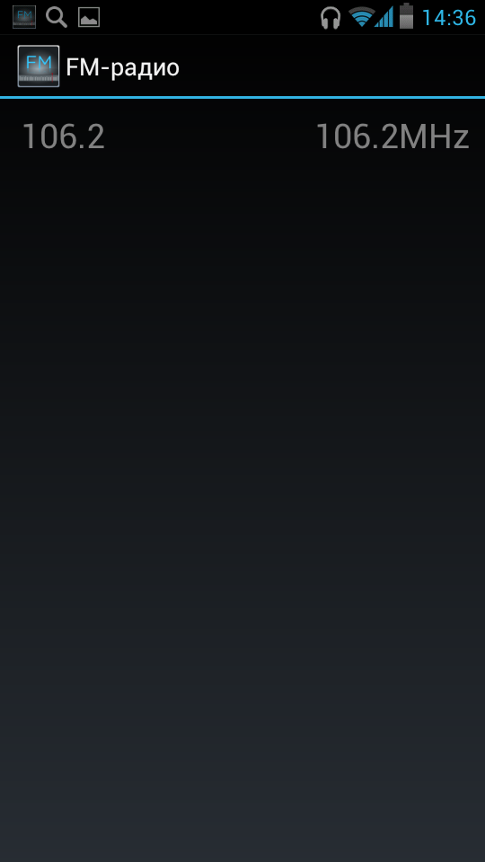 Встроенный в рассматриваемый смартфон радиоприемник FM-диапазона работоспособен только при подключенных наушниках, которые играют роль антенны. Внешний вид программы управления приемником DNS SI4301 лаконичен. С ее помощью можно проводить автоматический поиск станций и выставлять частоты вручную, сохранять понравившиеся станции в списке избранного. RDS, вывод сигнала на основной динамик смартфона, запись звука в файл — отсутствуют. Качество приема сигнала приемником — среднее.