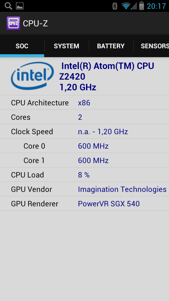 Герой нынешнего обзора — смартфон DNS SI4301 — относится к сегменту бюджетных устройств. Его отличительная особенность — процессор Intel Atom Z2420. Данная однокристальная система была анонсирована Intel в январе 2013 года и ориентирована именно на бюджетный сегмент устройств. Таким образом, можно констатировать, что и до начального сегмента смартфонов добралась продукция компании Intel, обычно бюджетностью не отличающаяся, привнеся в него между делом также архитектуру х86. С момента анонса процессоров Intel прошло достаточно времени, чтобы разработчики программного обеспечения на рынке Android-устройств учли особенности архитектуры х86 и адаптировали свои приложения, так что никаких особенных неприятностей в этом плане владелец Intel-смартфона получить не должен. Осталось проверить, есть ли у такого устройства какие-либо преимущества перед своими собратьями с ARM-процессорами.
