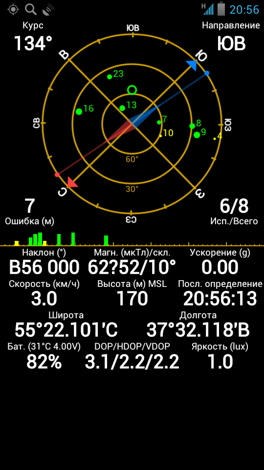 Смартфон DNS SI4301 быстро нашел сигналы спутников системы GPS и установил свое местоположение. На помощь пришла технология A-GPS.