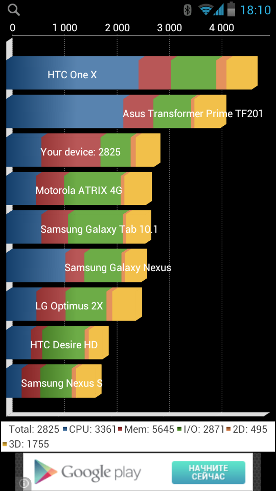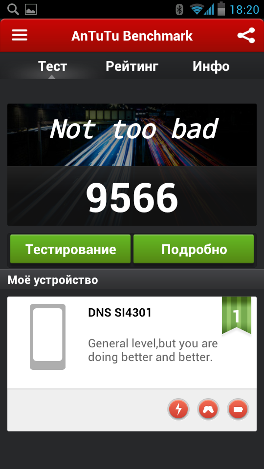 В целом, несмотря на невысокие оценки в синтетических тестах, DNS SI4301 демонстрирует хорошую производительность с точки зрения повседневной работы со смартфоном: задержки в работе интерфейса операционной системы и программ практически отсутствуют, запуск приложений происходит быстро, игры идут. Что касается самой SoC Intel Atom Z2420, то она, к сожалению, устарела очень быстро, ее возможности и производительность сильно уступают «царю» бюджетного сегмента — SoC MediaTek MT6589.