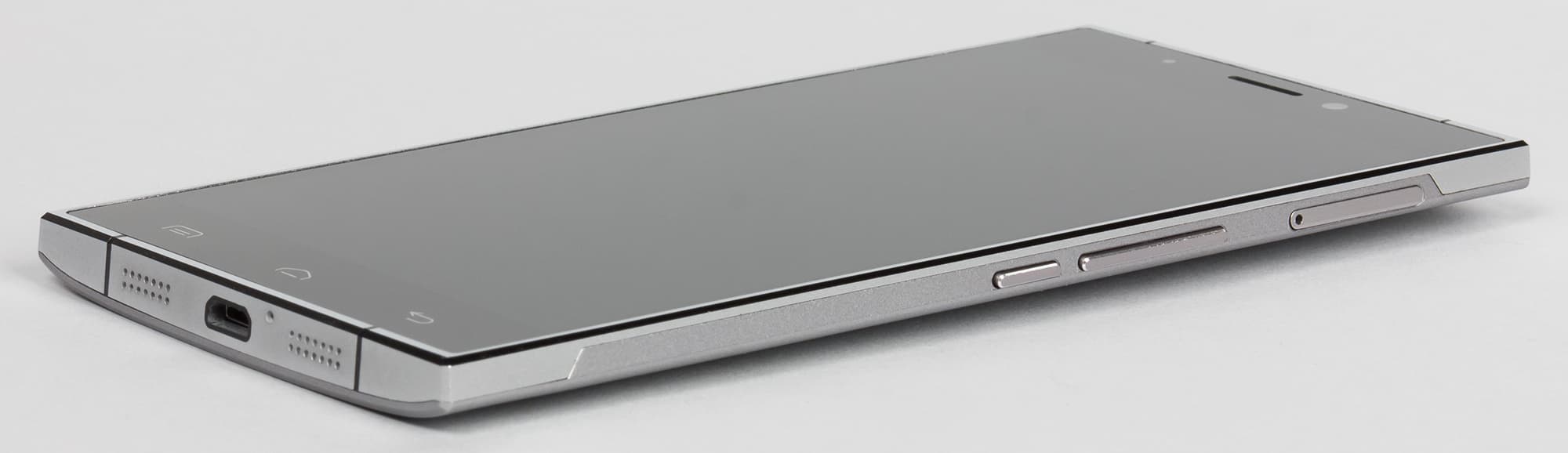Но с другой стороны, разработчики в стремлении создать неизбитый вариант дизайна для нового смартфона решили отойти от привычных форм с плавными изгибами и закругленными в плане углами. Doogee F5 получил прямые формы с острыми кромками и грубыми рублеными чертами вовсе без закруглений. Учитывая, что металл — штука твердая, эти острые торчащие углы играют плохую роль: с ними аппарат и места больше занимает, и весьма неприятно врезается в тело, находясь в карманах одежды. Наверняка, создавая скругленные углы и обтекаемые формы, разработчики современных смартфонов думали не только о красоте, но еще и о практической стороне вопроса, которая в данном случае сильно пострадала.