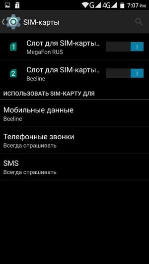 Смартфон поддерживает работу с двумя SIM-картами, и в целом работа с ними в меню организована по знакомому принципу: можно любую из SIM-карт назначить основной для организации голосовых звонков, передачи данных или отправки SMS-сообщений; при наборе номера также можно выбрать желаемую карту в контекстном подменю. С сетями 3G/4G может работать SIM-карта в любом слоте, однако одновременно в этом режиме может функционировать лишь одна из карт. Для смены назначений слотов карточки менять местами не требуется — это можно сделать прямо из меню телефона. Работа с двумя SIM-картами организована по привычному стандарту Dual SIM Dual Standby, когда обе карты могут находиться в активном режиме ожидания, но одновременно работать не могут — радиомодуль здесь только один.
