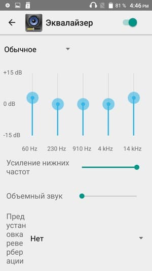В звуковом плане у Doogee F5 все на среднем уровне. Ругать на самом деле особенно не за что, но и для похвал качество не дотягивает. Обычный совершенно звук издает герой обзора, причем, как из основного динамика, так и в наушниках. Запаса громкости вполне хватает для любой обстановки, звук достаточно громкий, но безликий и неяркий, хоть и звонкий. Низких частот почти не слышно, добавить их без подключения наушников невозможно. Впрочем, даже при задействовании в наушниках некоторых имеющихся улучшений вроде эквалайзера с предустановленными значениями и отдельного ползунка для добавления басов, звучание не становится от этого заметно лучше, низких частот немного прибавляется, но при этом звук становится более глухой и тихий.
