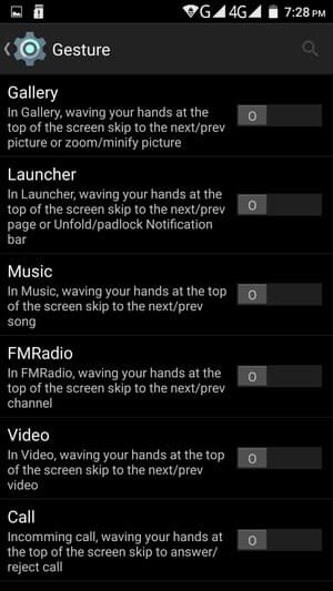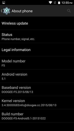 Doogee F5 работает на программной платформе Google Android версии 5.1 Lollipop с поддержкой дальнейшего обновления «по воздуху» (ОТА). Собственной альтернативной оболочки здесь нет, добавлена лишь собственная тема, выполненная в темных тонах, и доработана поддержка жестов. Управлять различными функциями здесь можно как с помощью бесконтактных жестов (проносить ладонь над экраном), так и жестов с прикосновением к экрану, например, начертания разнообразных значков, двойное постукивание и т.п. И все это, естественно, не переведено на русский даже в русскоязычном интерфейсе.