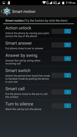 Яркость дисплея подстраивается вручную, либо можно задействовать автоматическую регулировку, основанную на работе датчика освещения. Технология мультитач здесь позволяет обрабатывать до 5 одновременных прикосновений, но стоит помнить, что при включенной функции снятия скриншота тремя пальцами тест мультитач будет определять лишь 3 прикосновения. Имеется у смартфона и датчик приближения, который блокирует экран при поднесении смартфона к уху. Экран можно разблокировать двойным постукиванием по стеклу либо начертанием на стекле специальных символов (букв латинского алфавита) с одновременным переходом к соответствующему приложению.