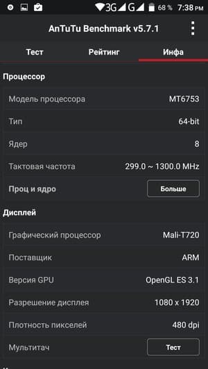 - SoC MediaTek MT6753 @1,3 ГГц, 8 ядер ARM Cortex-A53