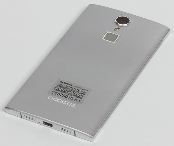 К тому же, полностью металлический корпус этого крупного мобильного аппарата получился еще и достаточно грузным, массивным. Тяжелый и объемный аппарат нельзя назвать удобным для удержания в руке, хотя толщина корпуса Doogee F5 не так уж велика. Внешняя поверхность корпуса имеет матовое покрытие, оно совершенно не маркое, отпечатков пальцев на нем не остается.