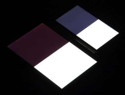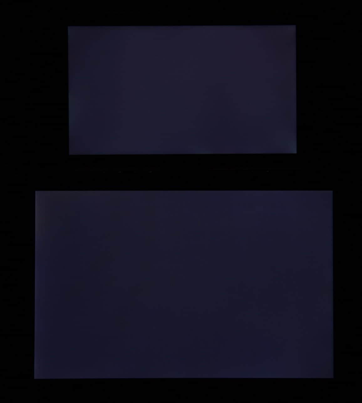 Яркость под углом у экранов уменьшилась (как минимум в 5 раз, исходя из разницы в выдержке), но у Doogee S60 снижение яркости чуть больше. Черное поле при отклонении по диагонали сильно высветляется и остается условно серым или приобретает фиолетовый оттенок. Фотографии ниже это демонстрируют (яркость белых участков в перпендикулярном плоскости экранов направлении одинаковая!):