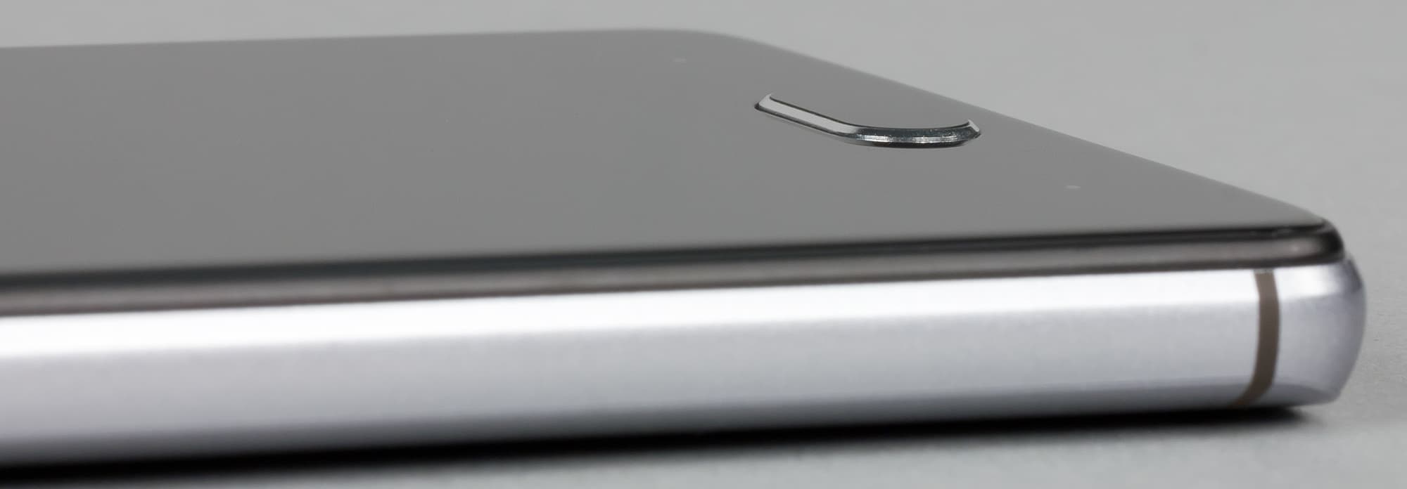 Площадка дактилоскопического датчика установлена не сзади, а на передней панели под экраном, где ей, пожалуй, самое место. Датчик привычно вписан в аппаратную механическую кнопку овальной формы. Кнопка тоже довольно жесткая, немного выпирает за пределы поверхности, так что ее легко найти пальцем на ощупь.