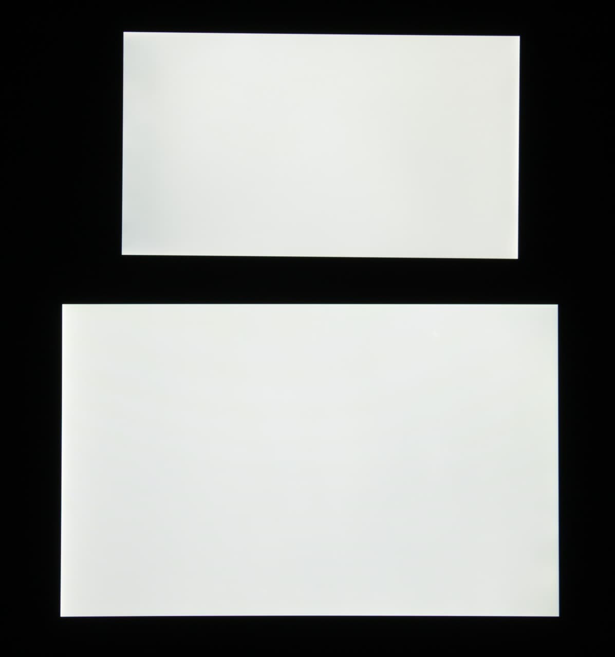 Отметим некоторую неравномерность яркости и цветового тона белого поля.