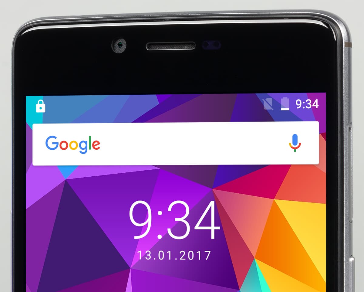 Doogee Shoot 1 оснащен сенсорным дисплеем IPS с размерами 68×121 мм при диагонали в 5,5 дюйма. Разрешение при этом составляет достойные 1920×1080, поэтому плотность точек здесь не менее 401 ppi. Рамка довольно широкая: по бокам более 4 мм, снизу — все 18 мм.