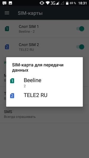 Интерфейс телефонного приложения стандартно позволяет выбрать для каждой из функций определенную карту заранее или прямо во время соединения. Работают карты в режиме Dual SIM Dual Standby, радиомодем здесь один.