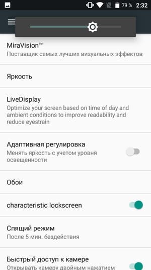 Яркость дисплея можно подстраивать вручную или задавать автоматические настройки, основанные на работе датчика внешнего освещения. Тест AnTuTu диагностирует поддержку 2 одновременных касаний мультитач.