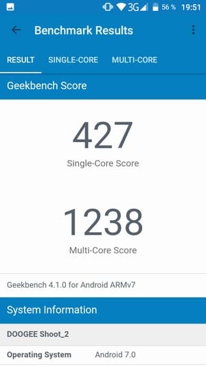 MediaTek MT6580 в Doogee Shoot 2 — это дешевая платформа, старенькая и маломощная, с отсталыми процессорными ядрами Cortex-A7, малым количеством оперативной памяти и столь же слабым видеоускорителем. Современные тесты 3DMark Ice Storm Sling Shot и GFX Benchmark смартфону просто недоступны ввиду того, что видеоускоритель не поддерживает OpenGL ES 3.1, запускаются лишь самые старые, с OpenGL ES 2.0. Doogee Shoot 2 пока еще справляется с основными задачами смартфона, и даже можно поиграть в нетребовательные игры, но запаса для будущих обновлений у его аппаратной начинки нет.
