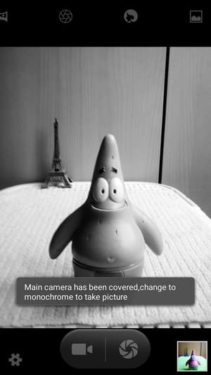 Отдельно вынесен режим так называемой «широкой диафрагмы», в котором на уже полученных снимках можно менять глубину резкости, программным путем добиваясь эффекта размытия фона. Выглядит все это довольно нелепо, поскольку часть фона обязательно попадает в «пятно резкости», не размывается, такие снимки получаются неестественными. Более хитрые разработчики уже давно придумали применять маску, накладываемую прямо с помощью пальца на основной объект. Тогда фон размывается более равномерно, а снимки выглядят интереснее, но здесь ничего такого нет.