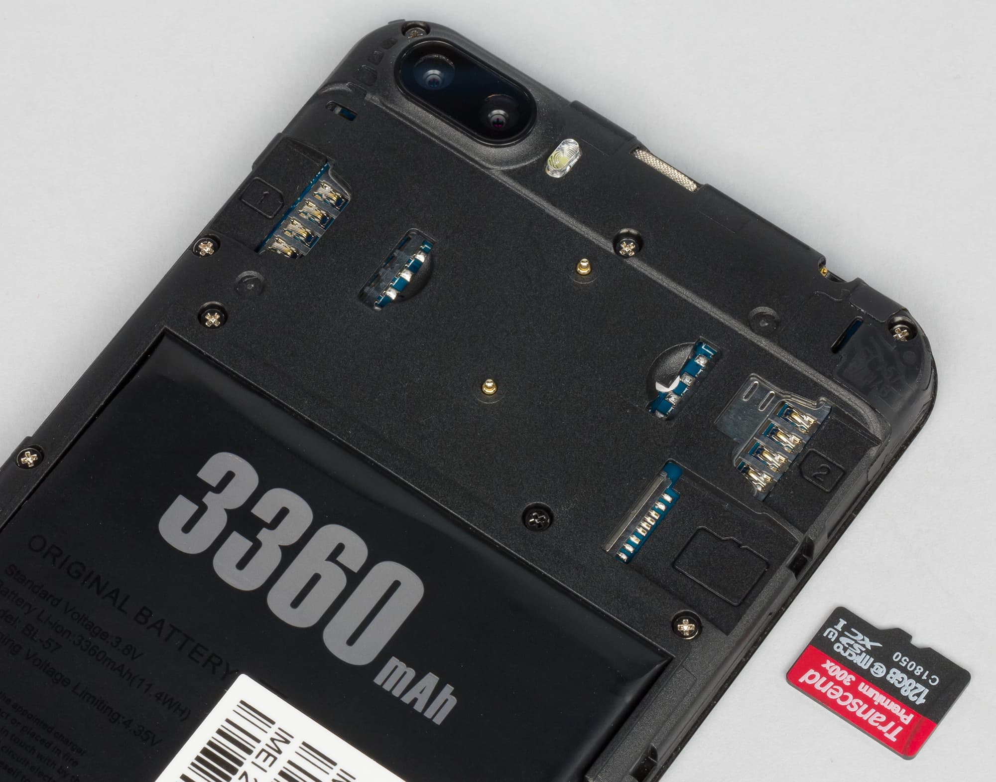 Есть возможность расширения встроенной памяти за счет установки карт microSD, и для этого не придется вынимать ни одну из SIM-карт. На практике наша проверочная карта Transcend Premium microSDXC UHS-1 объемом 128 ГБ уверенно распозналась устройством. Можно отформатировать карту памяти так, чтобы устанавливать и переносить на нее приложения.