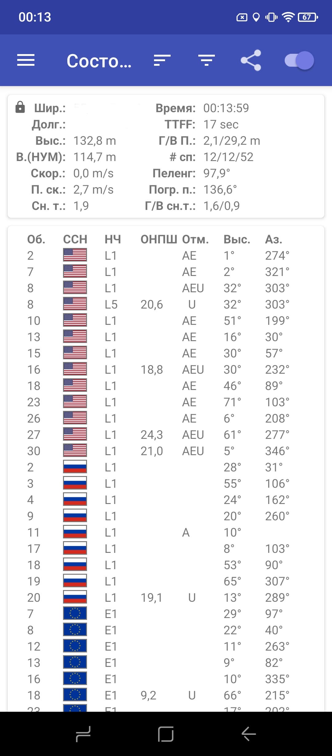 - GPS (L1+L5), Глонасс, Galileo, BDS