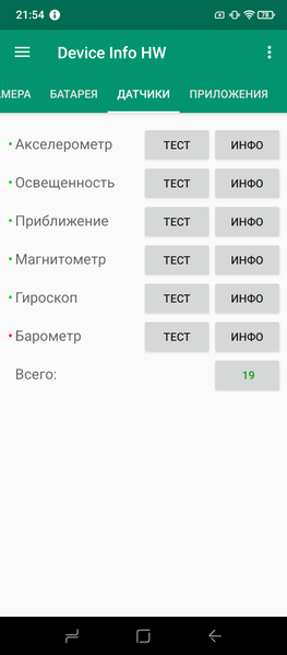 - Датчики приближения и освещения, магнитного поля, акселерометр, гироскоп