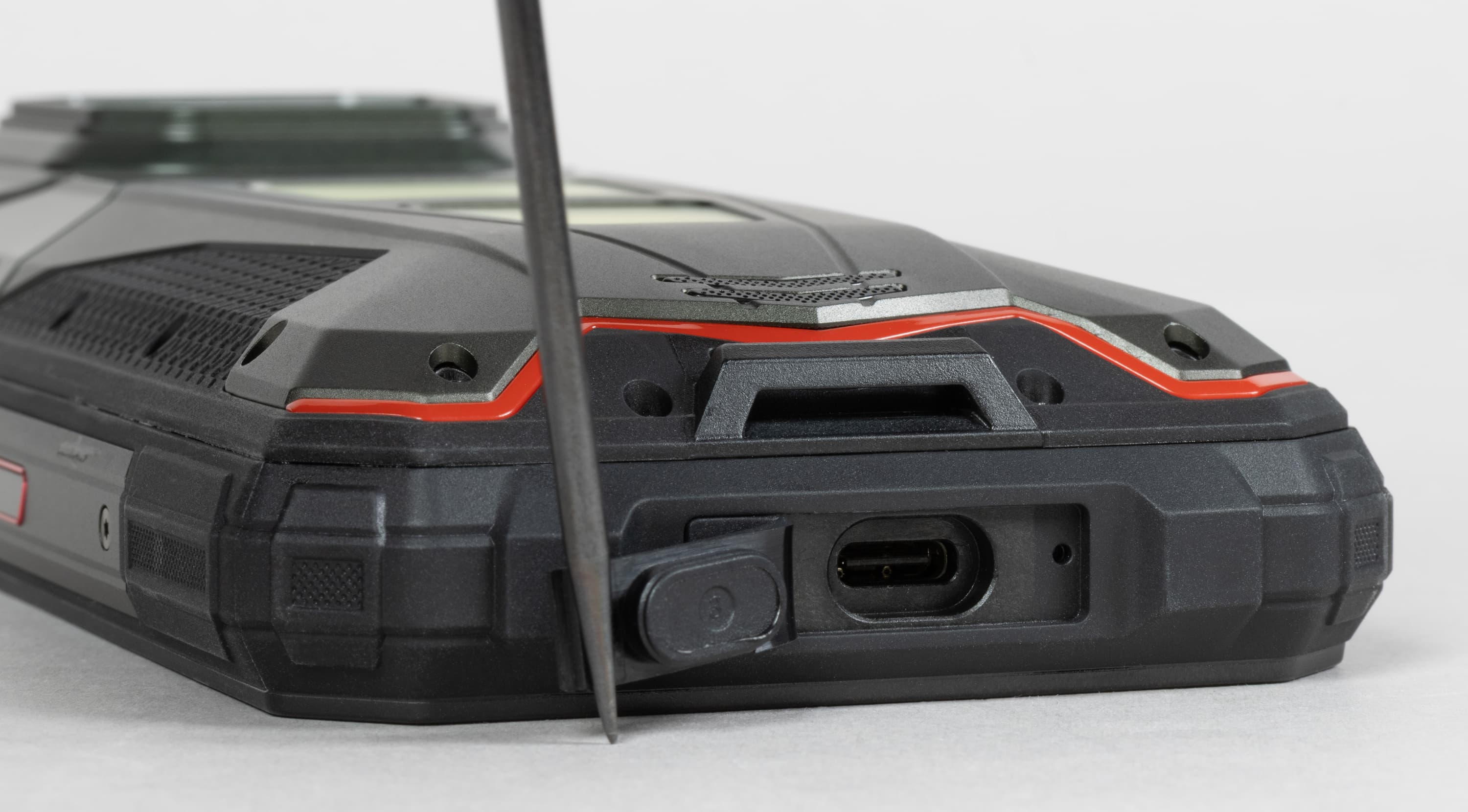 Разъем для кабеля прикрыт резиновой заглушкой. Несмотря на устремления разработчиков придать максимальную защиту всем элементам корпуса, у них случился один досадный промах, о котором нельзя не упомянуть. Дело в том, что разъем так сильно углублен в узкую пластиковую чашу, что до контактов не достает ни один сторонний соединительный кабель кроме комплектного. Таким образом, выходит, что стандартный разъем Type-C из-за невозможности использования некомплектного кабеля вмиг превратился в «проприетарный». Ведь случись что в дороге с комплектным кабелем, взять и подзарядиться другим не получится. Это стоит особо учитывать путешественникам, серьезно планирующим сложный многодневный маршрут.