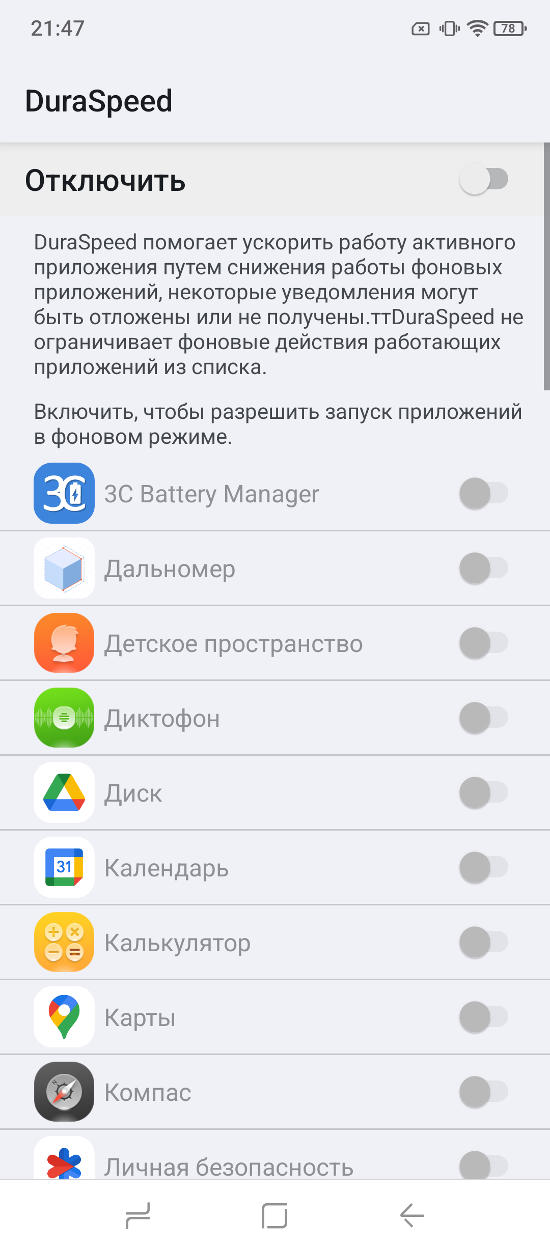 Интерфейс неплохо оптимизирован, не имеет навязчивой рекламы, но есть дополнительные приложения, в том числе вездесущий китайский DuraSpeed, который будет выкидывать из памяти работающие программы, пока в нем не покопаешься и не настроишь все это. Есть и другое приложение, под названием «Морозилка», в которое можно убрать редко используемые приложения вручную самостоятельно. Верхняя шторка не цельная, она разделена на две части в зависимости от места оттягивания. Имеется полноценная поддержка сервисов Google и магазин Google Play Store.