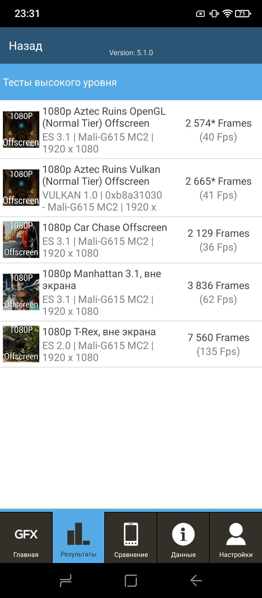 | GFXBenchmark Car Chase ES 3.1 (1080p Offscreen, fps) | 36 | 28 | 34 | 47 | 33 |