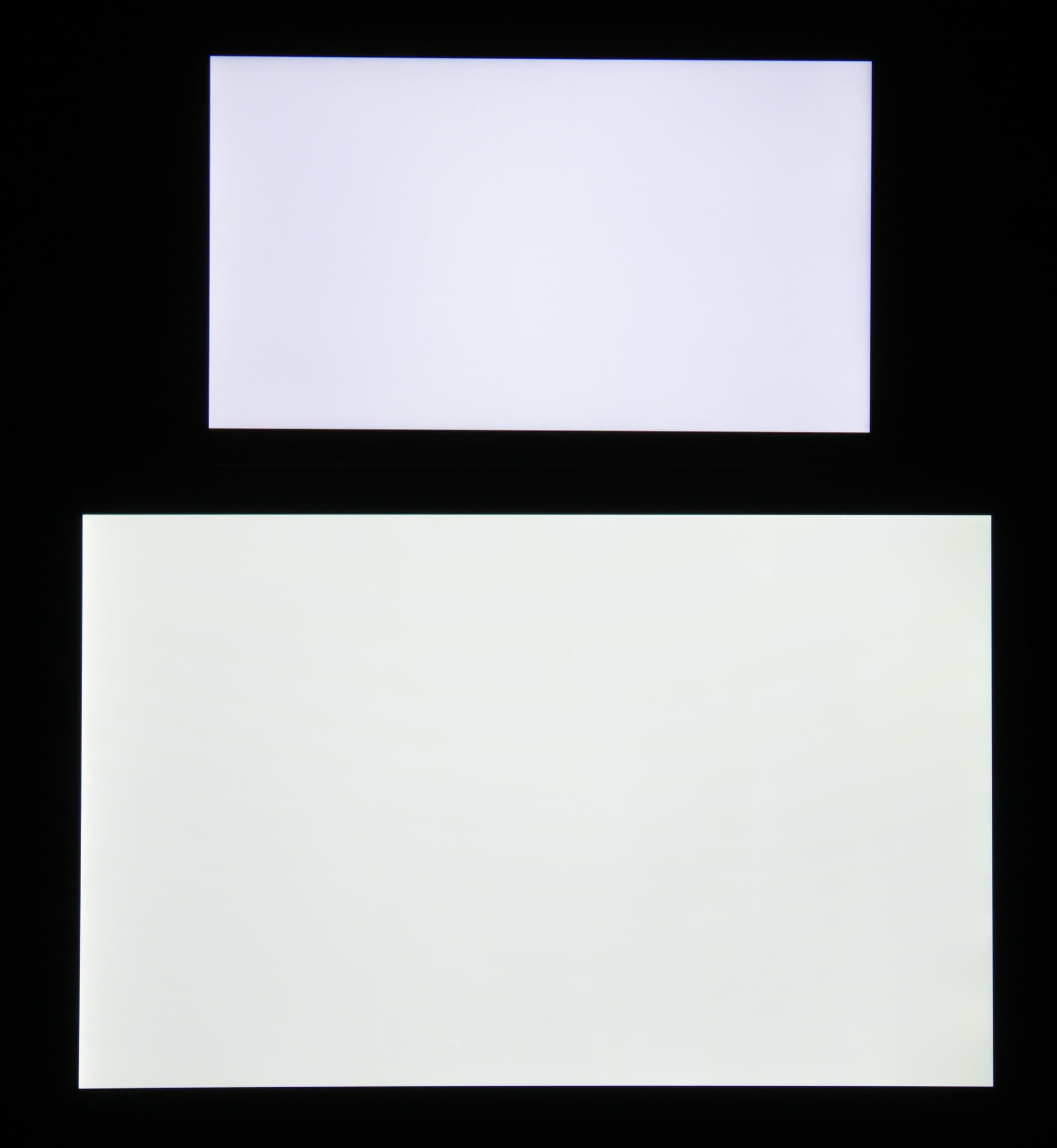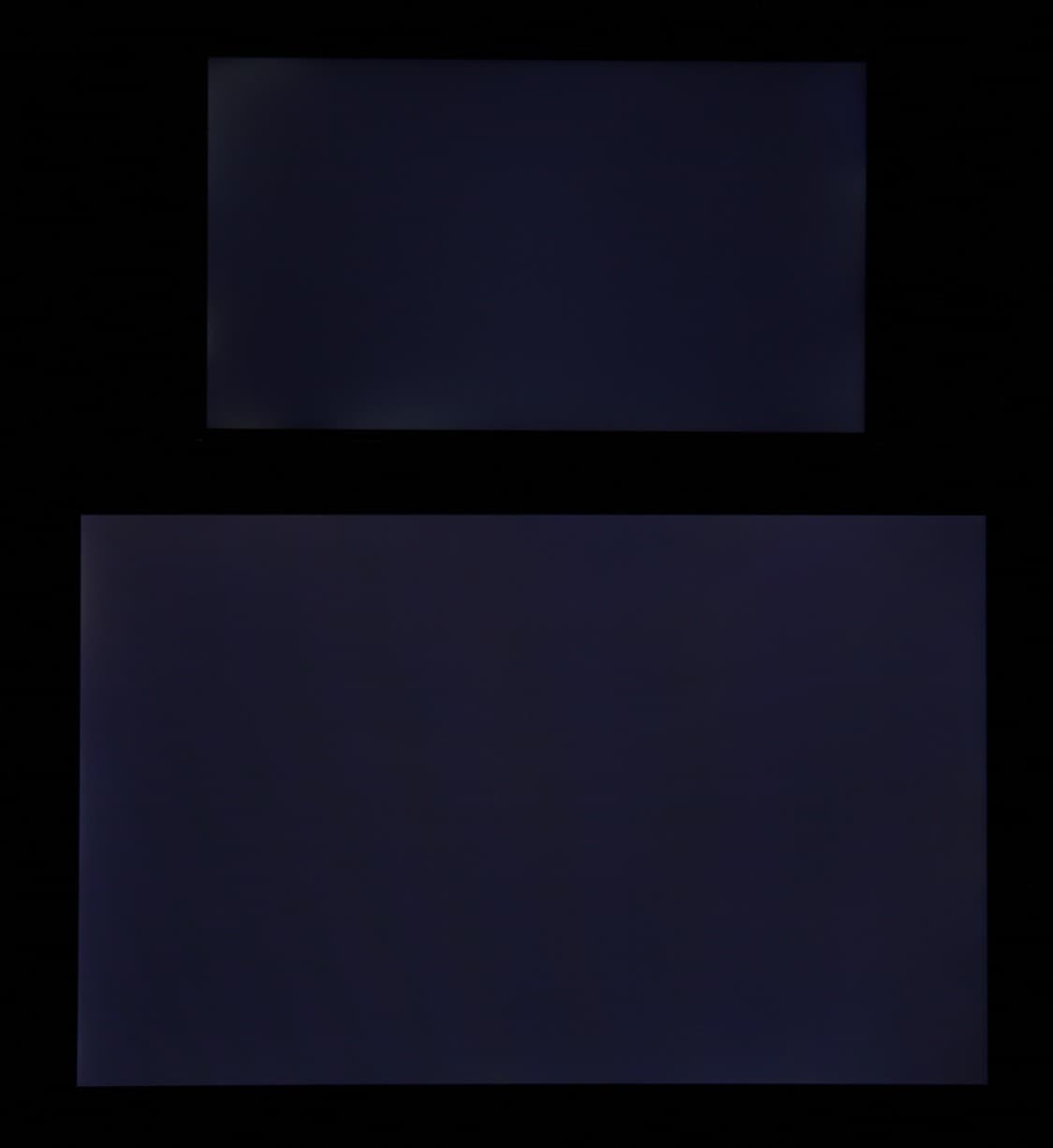 При перпендикулярном взгляде равномерность черного поля плохая, также впечатление портит то, что свет от светодиодов подсветки просвечивает сквозь щели по длинным краям экрана: