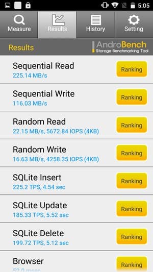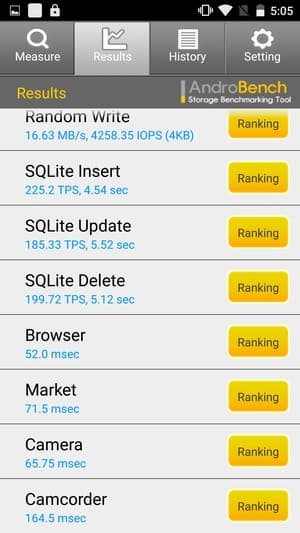 Результаты теста AndroBench на скорость работы с памятью: