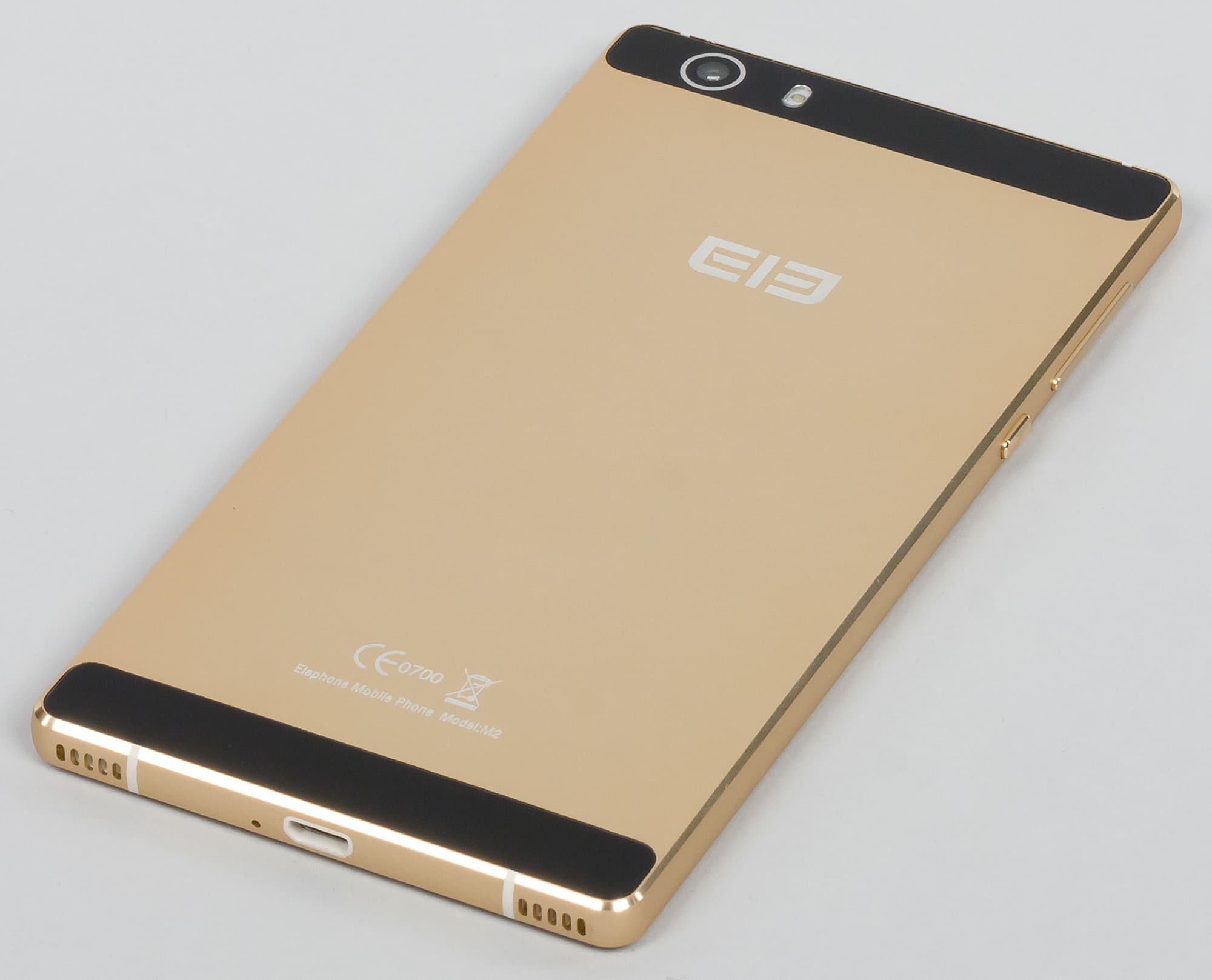 Дизайн, безусловно, является не только наиболее сильной стороной Elephone M2, но и основополагающей чертой всей новой линейки, поскольку и модель М1, выпущенная практически одновременно с М2, также заключена в тонкий металлический корпус. Смартфон по размерам весьма крупный, но за счет своего достаточно тонкого профиля и чуть округлых боковин он вполне комфортно удерживается в руке.