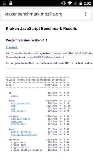 Что касается бенчмарков для оценки скорости движка javascript, то стоит всегда делать скидку на то, что в них результаты существенно зависят от браузера, в котором запускаются, так что сравнение может быть истинно корректным только на одинаковых ОС и браузерах, а такая возможность имеется при тестировании не всегда. В случае с ОС Android мы всегда стараемся использовать Google Chrome.