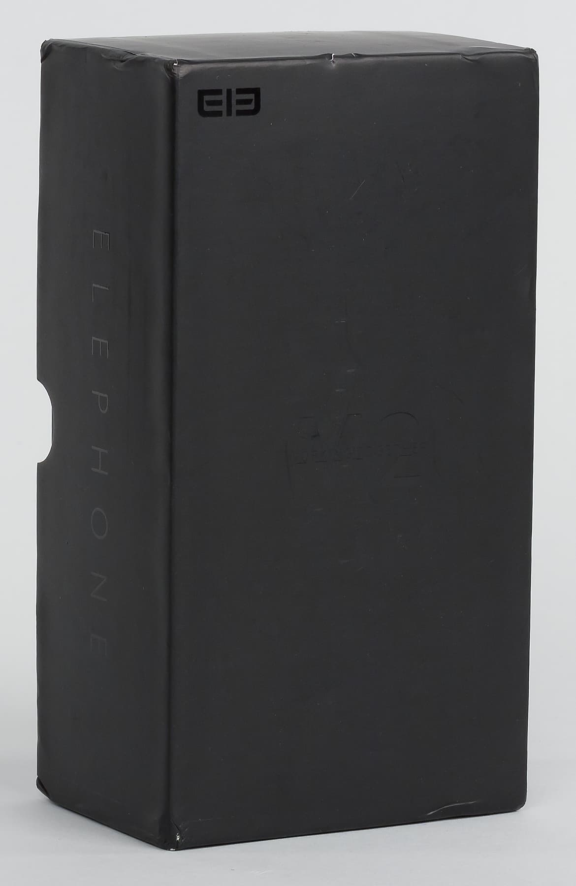 Elephone M2 поставляется в продажу в неожиданно весьма крупной коробке, размеры которой не обусловлены скудным ее содержимым. Коробка выполнена из абсолютно черного матового картона без картинок и с минимальным количеством надписей. Таким образом она как бы претендует на премиальный уровень, но это у нее плохо получается, ощущения дороговизны не возникает.