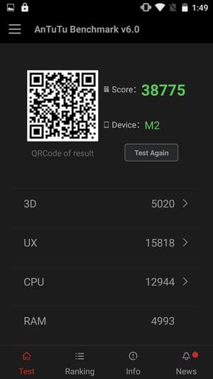 Что касается конкретных тестов, то, к сожалению, популярный бенчмарк AnTuTu в очередной раз поменял версию, полностью изменив всю систему подсчета очков, так что сравнение с предыдущими версиями опять стало неактуальным. Так ведут себя только разработчики этого теста, и зачем они это делают, не совсем понятно, но остается лишь констатировать факты: в пятой версии AnTuTu смартфоны на платформе МТ6553 (например, Elephone P8000) выдавали около 31К очков, теперь же его более свежий собрат на той же самой SoC демонстрирует целых 38К очков в шестой версии AnTuTu. Такое сильное несоответствие результатов между разными версиями теста подтверждает и статистика AnTuTu: например, тот же Samsung Galaxy Note 5 теперь находится в рейтинговой таблице на уровне 84К очков, в то время как в предыдущей версии теста аппарат демонстрировал 68К.