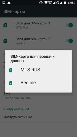 Смартфон поддерживает работу с двумя SIM-картами. Традиционно для интерфейса Android без дополнительных оболочек, настройки, связанные с работой SIM-карт, неудобно разбросаны по нескольким разделам, альтернативные интерфейсы в этом вопросе часто предоставляют гораздо большее удобство управления. Так, в разделе о SIM-картах можно вроде бы настроить всю работу, и все равно не понимать, почему происходит «сбой сети», а потом обнаружить, что необходимо еще зайти в раздел «Траффик данных» и там дополнительно еще раз включить передачу данных, поскольку и там имеется отдельная кнопка, которая по умолчанию выключена. Любую из карт можно изначально назначить основной для голосовой связи, отправки SMS и передачи данных. Если голосовую связь не привязать к определенной карте, то при каждом вызове будет всплывать контекстное меню. Это не очень удобно, лучше было бы иметь перед глазами сразу обе кнопки с обозначенными SIM1 и SIM2 на выбор.
