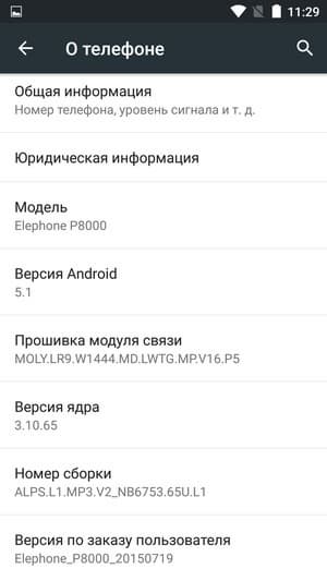Elephone P8000 сразу работает на программной платформе Google Android свежей версии 5.1 Lollipop. Поддерживаются обновления прошивки «по воздуху» (ОТА).