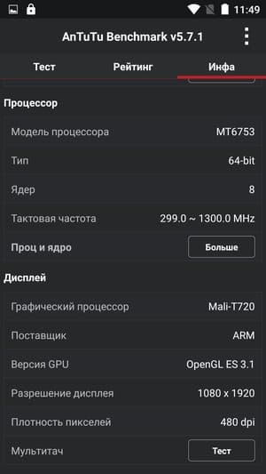 По результатам тестирования знакомая уже платформа ожидаемо показала результаты значительно более низкие, чем выпущенная ранее гораздо более мощная МТ6752, у которой частота тех же ядер достигает 1,7 ГГц. Но еще большее отличие заключается в видеоускорителях: вместо мощного графического ускорителя Mali-T760 с частотой ядер до 700 МГц здесь используется трехъядерный Mali-T720 с частотой ядер до 450 МГц, что не могло не сказаться негативным образом на производительности в играх. В итоге показатели этой упрощенной платформы МТ6753 оказываются на одном уровне с менее производительной Qualcomm Snapdragon 615, в то время как более мощная родственница МТ6752 значительно опережает их всех по всем параметрам. Тем не менее, возможностей данной SoC на текущий момент должно хватать для выполнения большинства стандартных задач, хотя ее быстродействие в каждой конкретной требовательной игре всегда будет под вопросом.