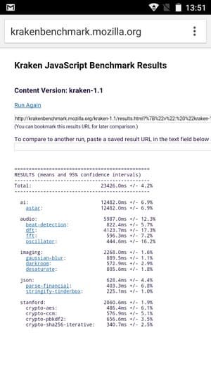 Что касается бенчмарков для оценки скорости движка javascript, то стоит всегда делать скидку на то, что в них результаты существенно зависят от браузера, в котором запускаются, так что сравнение может быть истинно корректным только на одинаковых ОС и браузерах, а такая возможность имеется при тестировании не всегда. В случае с ОС Android мы всегда стараемся использовать Google Chrome.