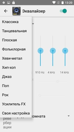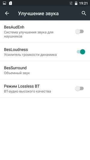 Для управления качеством звучания имеется возможность задействовать знакомые усилитель громкости динамика BesLoudness и систему улучшения звука для наушников BesAudEnh. Для воспроизведения мелодий в смартфоне используется штатный аудиоплеер с возможностью выбора из нескольких предустановленных значений эквалайзера. В штатном плеере предусмотрен режим проигрывания lossless-форматов.