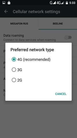 Смартфон стандартно работает в современных сетях 2G GSM и 3G WCDMA, а также имеется поддержка сетей четвертого поколения LTE Cat4 (FDD-LTE: 800/1800/2600 МГц), то есть частоты, используемые в России, также поддерживаются. На практике с SIM-картой отечественного оператора Билайн смартфон регистрируется и работает в сети LTE.