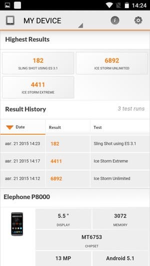 Смартфон Elephone P8000, продающийся на момент анонса статьи по цене от $170, нельзя назвать по-настоящему топовым устройством — ни по одной из характеристик. Перед нами достаточно скромный во всех отношениях планшетофон, который не блещет ничем, кроме разве что автономности, да и то достигается она с помощью немалых жертв, таких как огромная масса и внушительные габариты корпуса. В остальном же смартфон весьма прост, камера и звук далеко не на высоте, набор сетевых модулей стандартен, экран и производительность удовлетворительные. При этом выбор менее производительной SoC MediaTek MT6753 видится минусом, поскольку по такой цене вполне можно найти среди китайской продукции смартфоны, построенные на более мощной платформе MediaTek MT6752. Тем не менее, смартфон наверняка найдет своего покупателя хотя бы за счет своей основополагающей характеристики — весьма внушительного времени автономной работы без подзарядки.