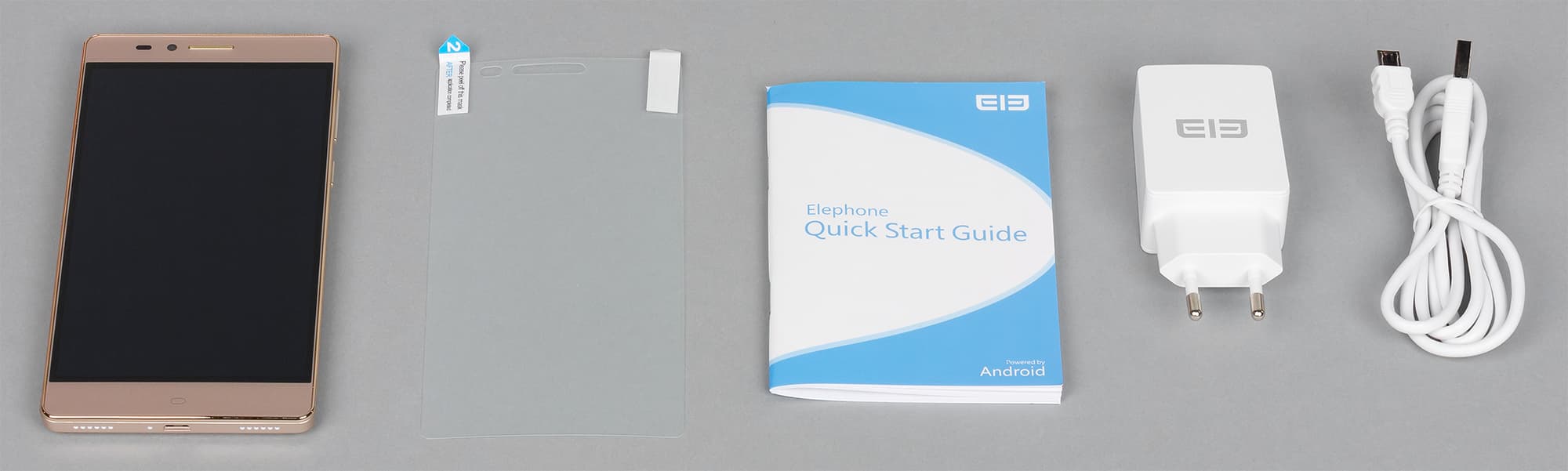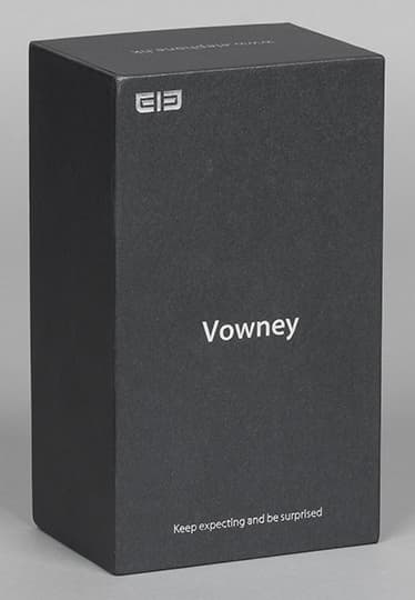 Elephone Vowney поставляется в весьма крупной по размерам коробке прямоугольной формы, выполненной из твердого матового картона. Упаковка оформлена не притязательно, но аккуратно и лаконично, окрашена в черно-серебристые цвета, имеет несколько отделений внутри.